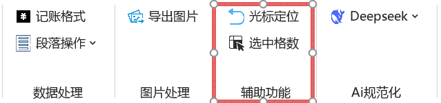 08 辅助功能¶ 在本文中,主要介绍一些辅助功能,你可以在下面这里找到这些功能: 光标定位¶ 这个功能的设置主要在于你往下滑动,需要寻找一个具体的内容,可能往下走了几页或者十几页,然后想要回到之前光标在的位置,又得找老半天,这个功能就可以帮助你快速定位到之前的位置。 选中格数¶ 有的时候你选中了表格的一些区域,然后想看下选中了多少个单元格,这个功能就可以帮助你实现。具体效果如图: (此选项卡目前功能稍少,后续会继续补充,敬请期待!)