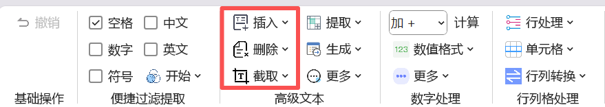本篇文章重点讲解 杰瑞工具箱 → 高级文本 的前三大功能,插入文本,删除文本和截取文本,位置如下: