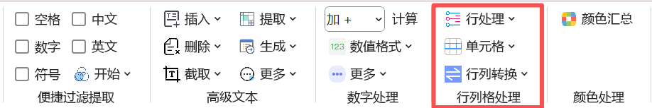 在这个选项卡下,提供了批量合并单元格的功能,主要有两种方式,按列合并和按行合并,具体实现效果如下: