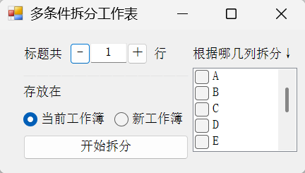 此时可以使用 单列拆分工作表 功能,其具体功能界面如下:
