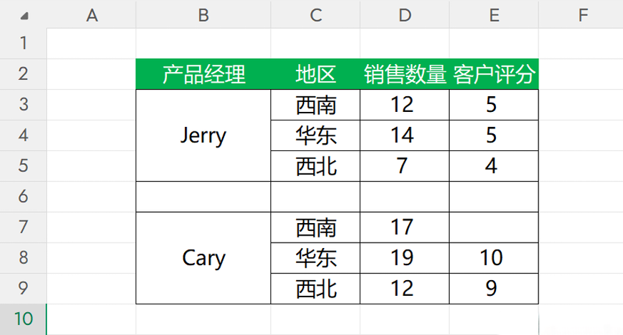| Unnamed: 0 产品经理 地区 销售数量 客户评分