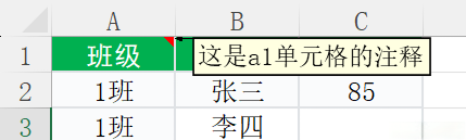 range("a1").comment.visible = true的时候,表格就会一直显示这样一个注释,如下图: