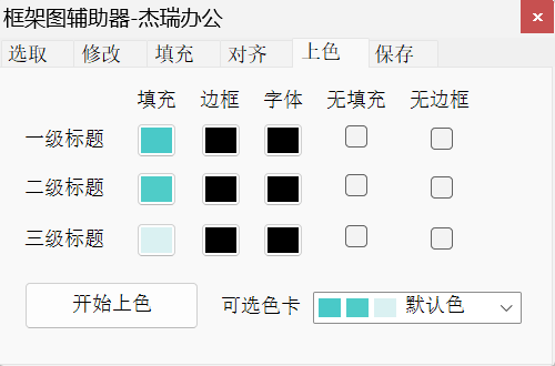 在这里可以批量对选中的形状进行上色,主要是配合之前生成的框架图进行进一步润色,对于每一级标题,我们都可以设置其: