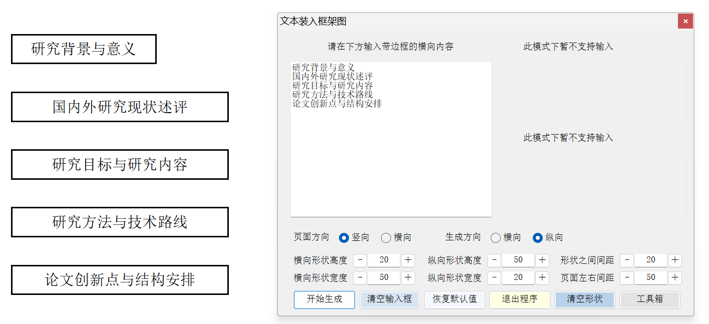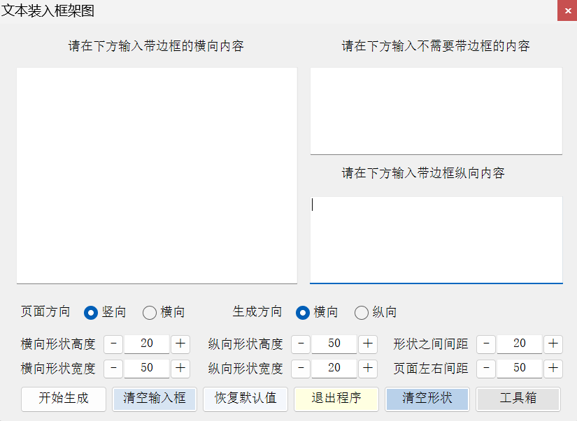 注意:生成方向是纵向的时候,暂时只支持带边框的横向内容,对功能进行了精简化处理