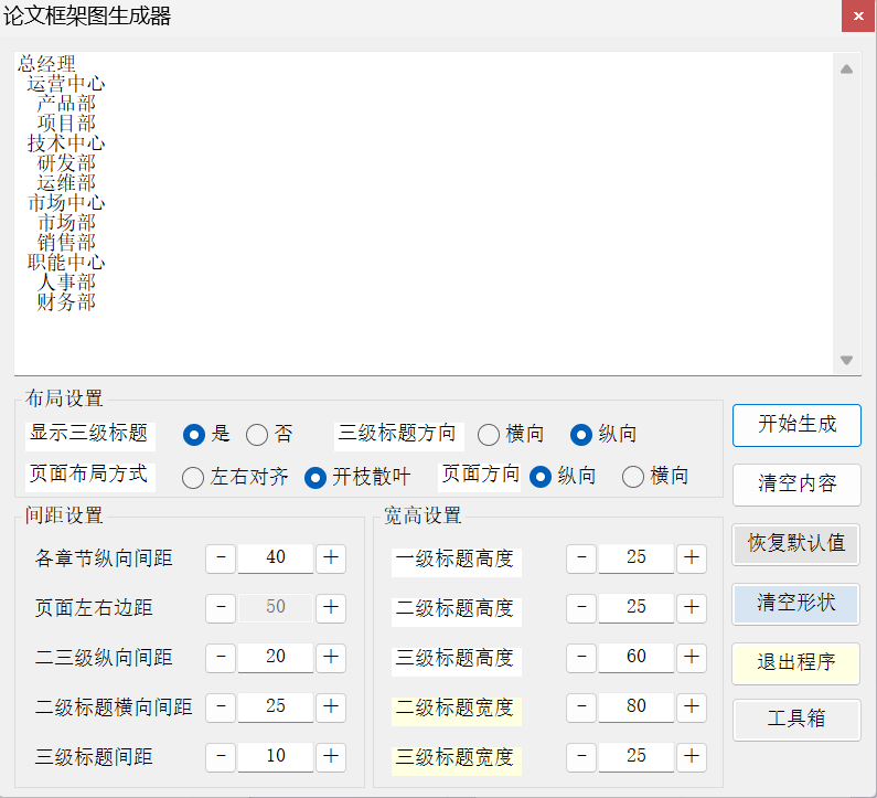 - 二级标题~三级标题宽度:设置二级标题、三级标题的宽度,注意一级标题宽度默认以最长的一级标题自适应