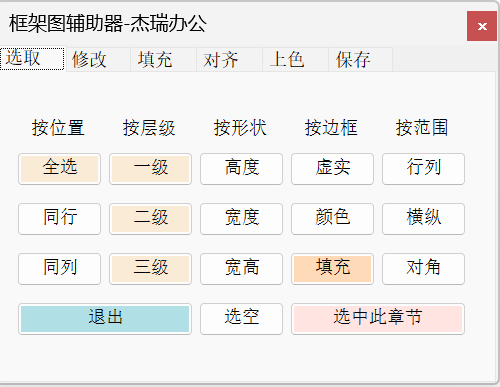 此界面如下,主要用于批量选取需要操作的形状,方便对格式进行批量修改,界面如下: