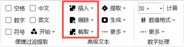 本篇文章重点讲解 杰瑞工具箱 → 高级文本 的前三大功能,插入文本,删除文本和截取文本,位置如下: