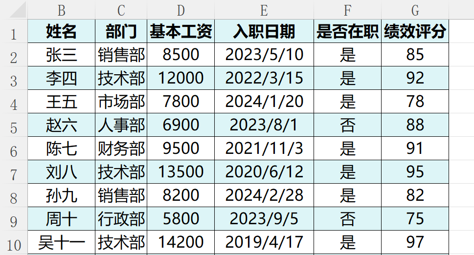 隔行上色功能,支持你更好地查看数据,比如我们有一块表格区域,通过隔行上色,可以实现如下效果: