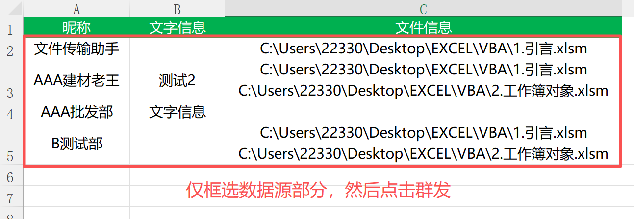 - 第三列:填写要发送的文件路径(可选,可以是多个文件路径,用换行隔开)