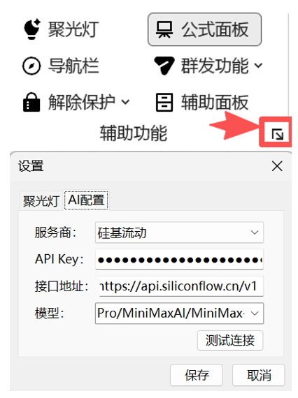 在 1.0.6 版本过后,增加了AI公式功能,操作流程如下: