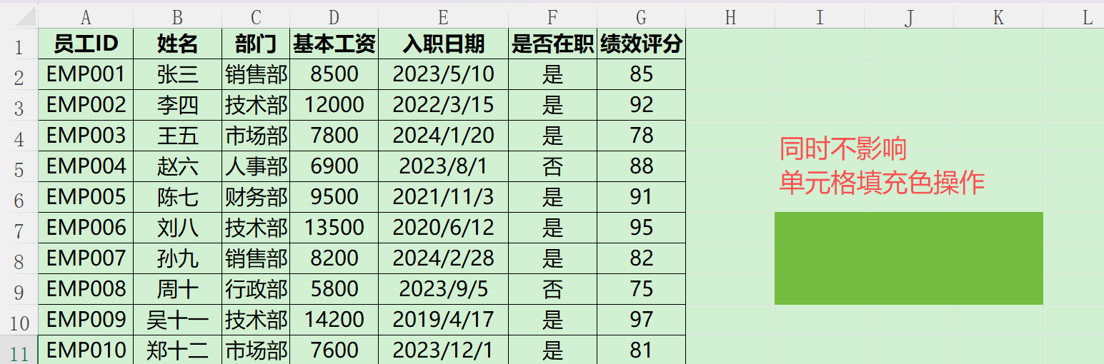 开启此功能后,单元格区域会被设置为淡绿色,以保护视力,具体效果如下图: