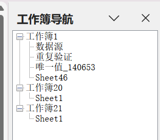 具体导航窗口如下,可以帮助你在多开工作簿或者工作表很多的时候快速进行切换: