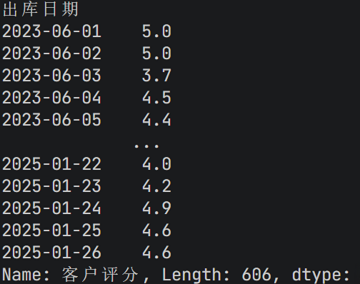 | df["客户评分"].fillna(value=0,inplace=True) # 填充缺失值