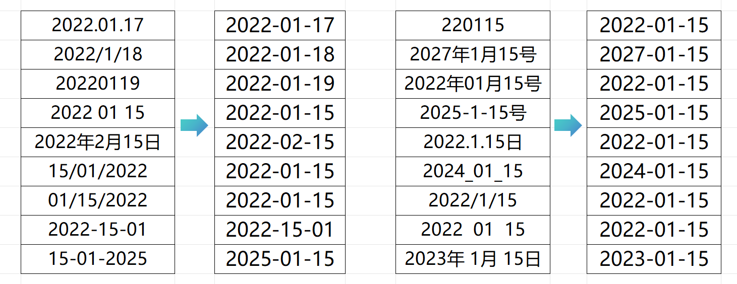 我们在工作中,经常会遇到各个部门提交上来的日期数据,但是不同部门的日期格式不一致,比如有的是yyyy-mm-dd,有的是yyyy/mm/dd,有的是mm/dd/yyyy,有的是dd-mm-yyyy等,为了方便后续的分析,我们需要将这些日期数据转换为统一的格式,你只需要把所有日期放在第一列,然后点击“转换日期”按钮,即可将所有日期转换为yyyy-mm-dd格式